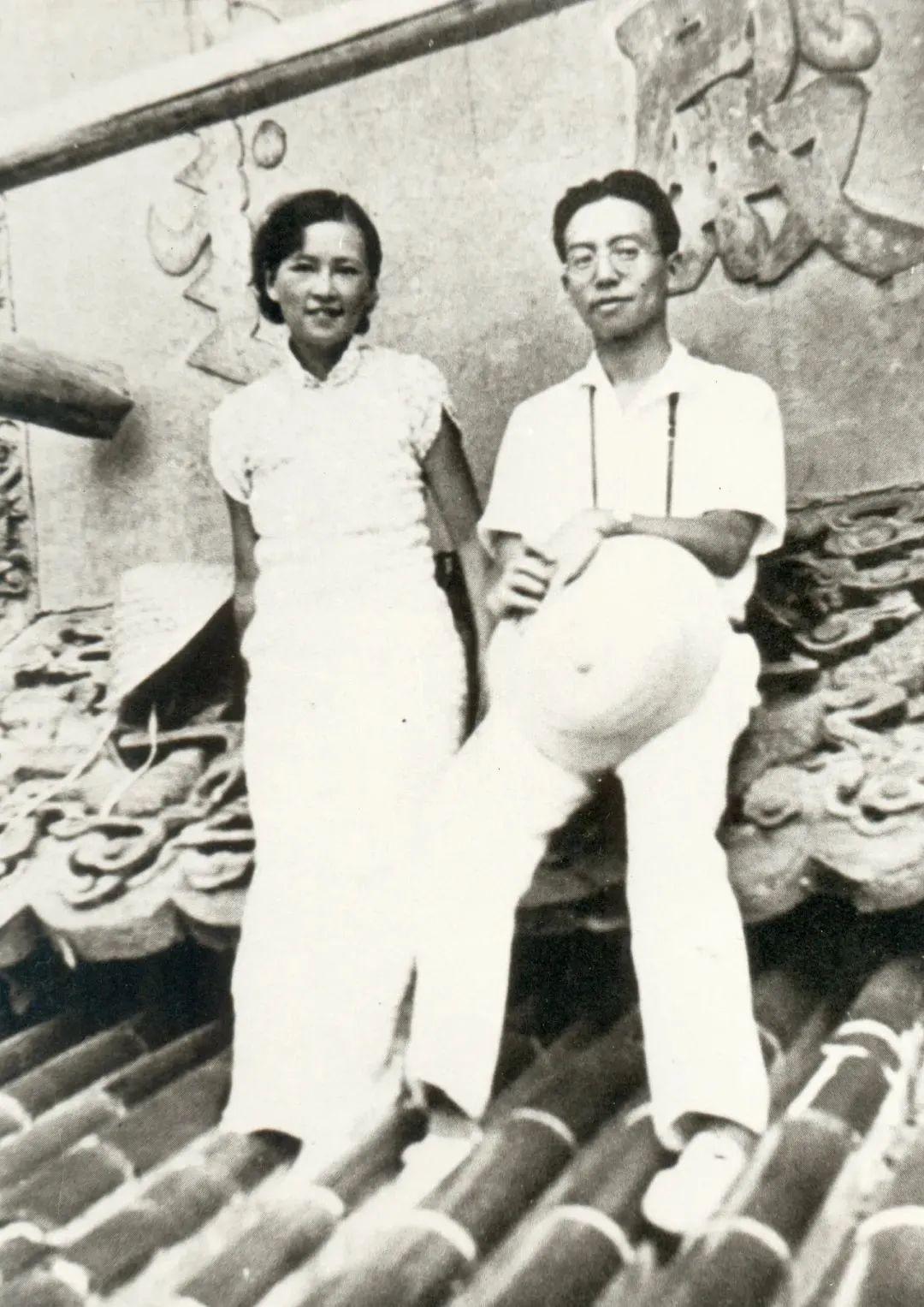 林徽因与梁思成在天坛祈年殿屋顶。图源:中国妇女报