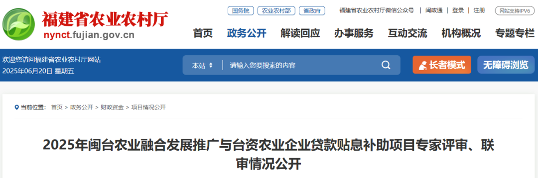 日前,福建省农业农村厅发布了2025年闽台农业融合发展推广与台资农业企业贷款贴息补助项目专家评审、联审情况公开。