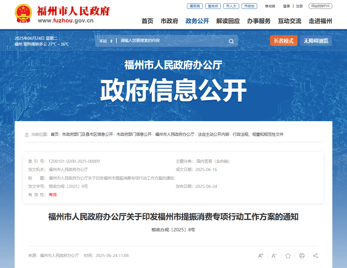 福州市人民政府办公厅关于印发福州市提振消费专项行动工作方案的通知