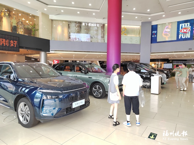 “这不是我印象中的福州商场,感觉更像是车展现场。”25日中午,刚从美国回到福州的张女士,步入万象九宜城时惊讶地表示。商场中庭最显眼的位置,整齐排列着新能源车,吸引过往消费者驻足观看;环绕中庭的商铺也全部变成新能源汽车品牌的展厅,里面坐满了前来看车的顾客。