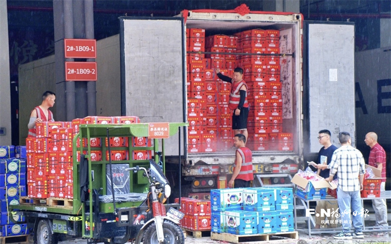 炎炎夏日,要保证水果的新鲜度,运输效率至关重要。作为福建省一级农产品批发市场,物流园构建了“冷链物流+大型储存冷库+线下线上分发平台”的完整供应链体系,确保所有产品第一时间送达各个地区。
