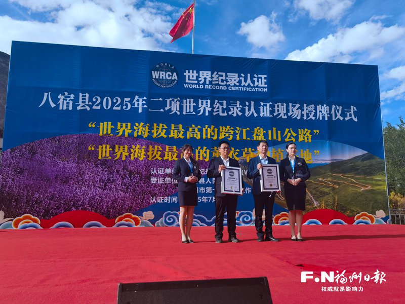 福州援藏项目获得“世界海拔最高的薰衣草种植基地”世界纪录认证。(福州援藏工作队供图)