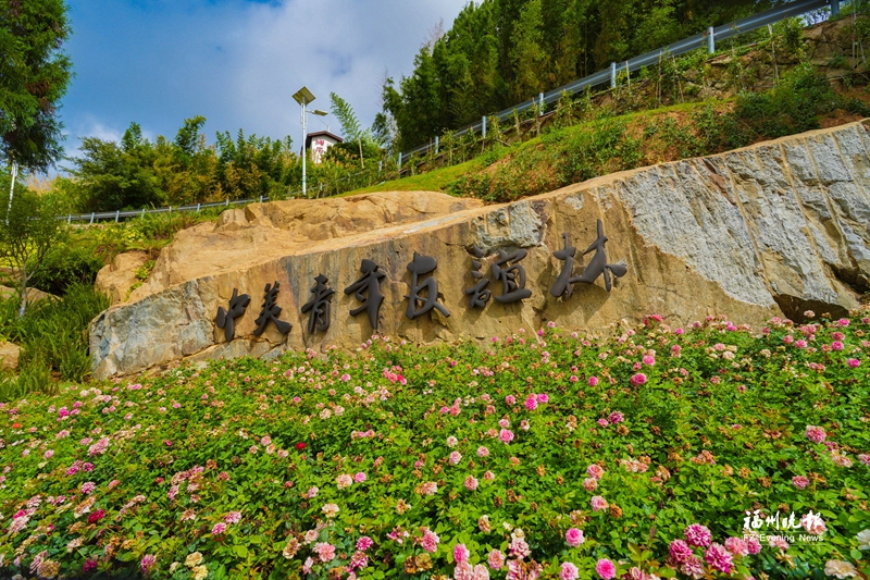 沿着石阶小道继续前行,便进入“生生不息”区域。这里是柳杉步道的起点,步道两侧种有月季、玫瑰等。此处的设计灵感取自鼓岭千年柳杉林,寓意中美人民的友谊像千年柳杉一样生生不息。柳杉步道还可直通鼓岭“网红”徒步线路——环柱岗顶游步道,打卡流苏径、揽月亭、观日台、柱里露营地等景点。