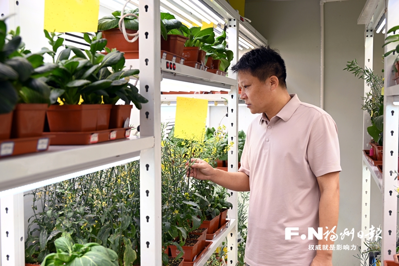 日前,在位于闽侯的福建金品农业科技股份有限公司的智能人工气候室内,朱彬俯身观察一盆盆青梗菜苗,记录着每株植株从嫩绿叶片到初结菜荚的生长轨迹。