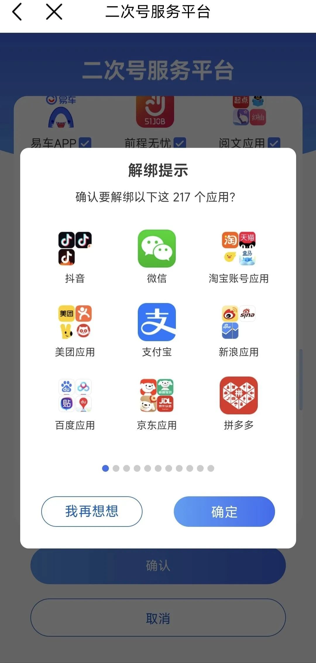 针对这一情况,在国家工信部指导下,今年5月,三大运营商上线了“二次号码焕新服务”,可以从运营商的层面,对手机号曾经注册过的应用账号发起解绑申请。解绑完成后,原有账号将与手机号“脱钩”:原账号依然存在,但需要绑定新手机号;新手机号则可以直接注册新账号。