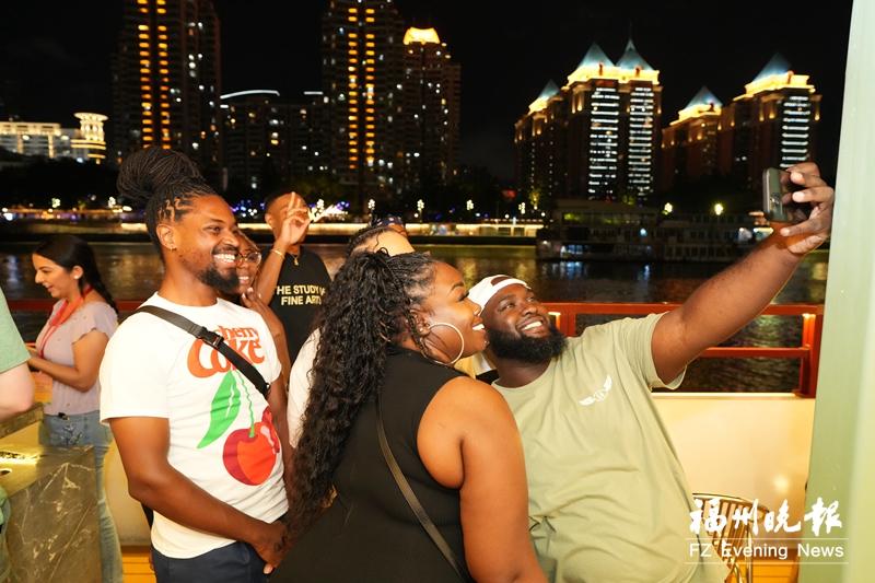 嘉宾们乘船夜游闽江。
