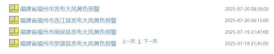 福州市气象台2025年07月20日08时36分继续发布大风黄色预警信号:受台风“韦帕”外围环流影响,未来12小时,晋安区(宦溪镇、鼓山镇等高海拔山区)和马尾区(沿海海区和亭江镇、琅岐镇)东北风6~7级,阵风8~10级。请注意防范!