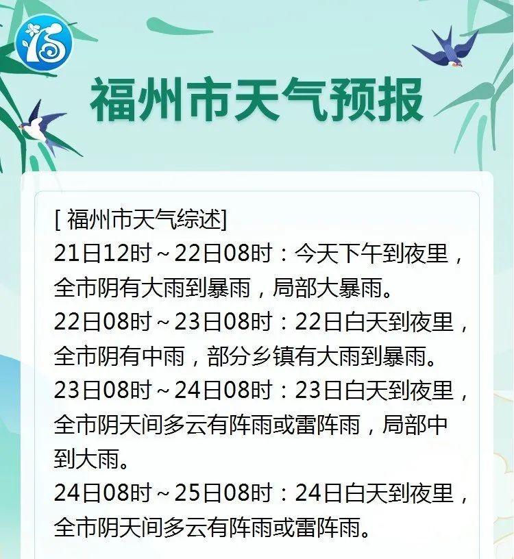 21日下午到夜里,福州全市阴有大雨到暴雨,局部大暴雨↓↓