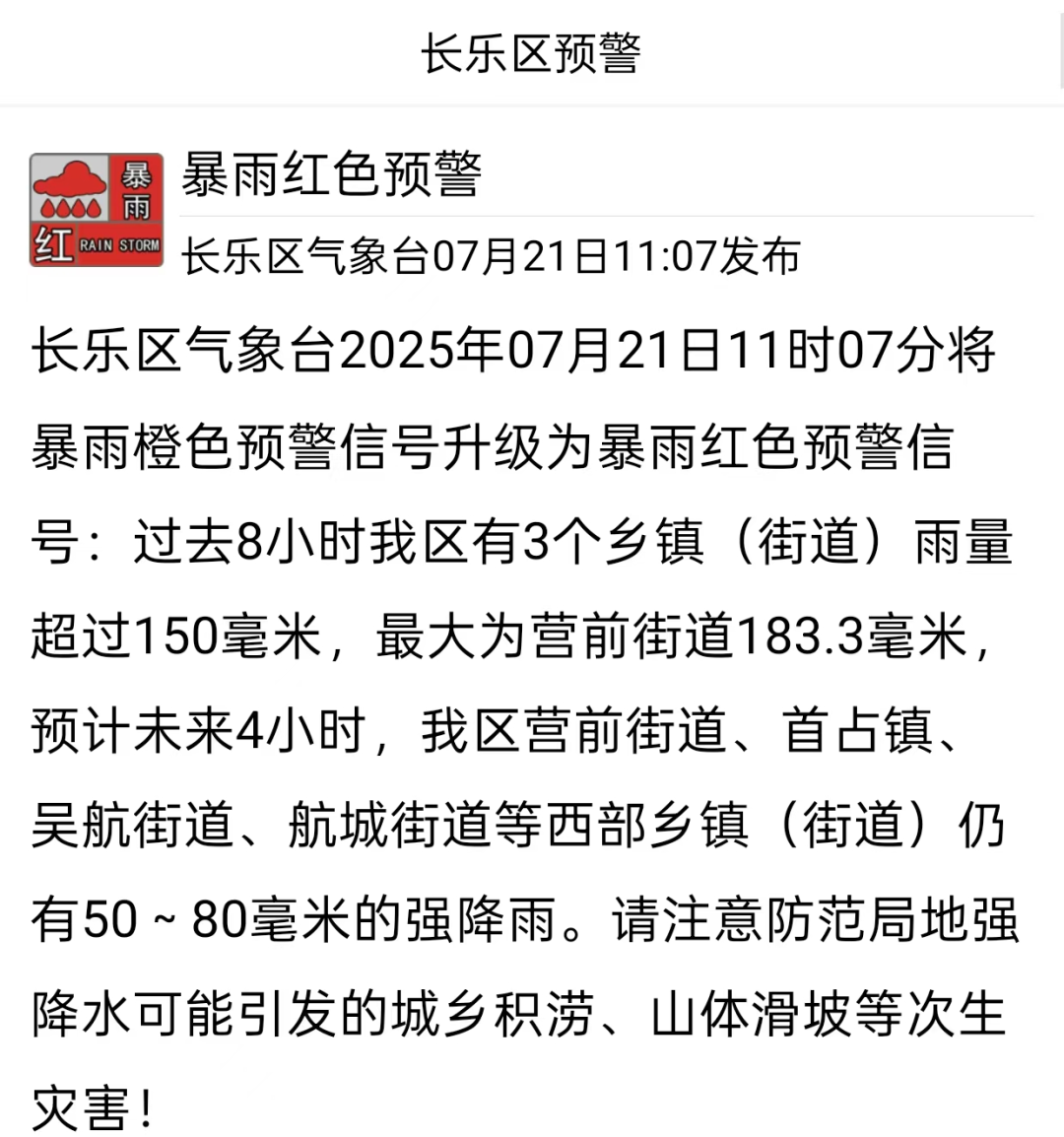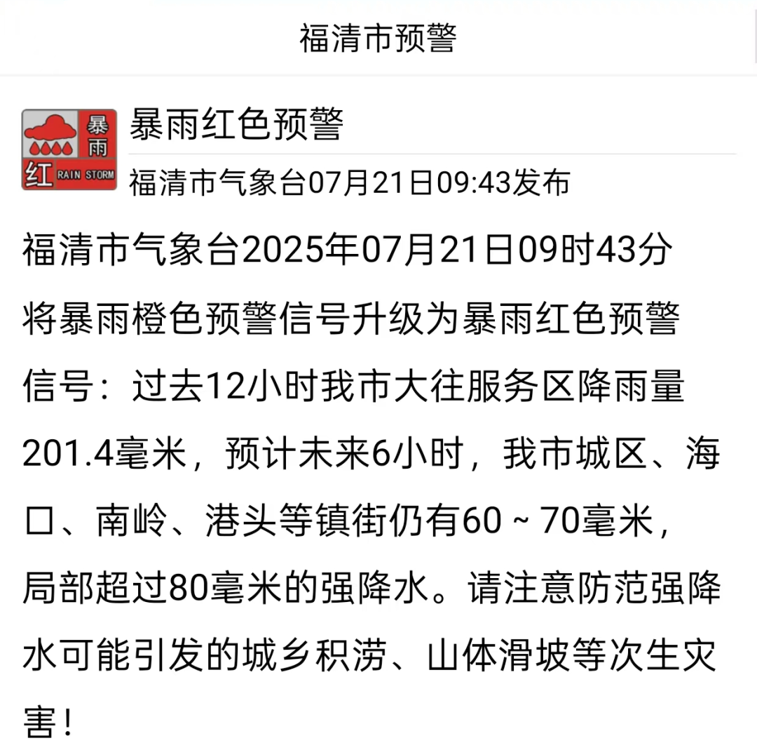 福清、长乐先后将暴雨橙色预警信号,升级为暴雨红色预警信号↓↓