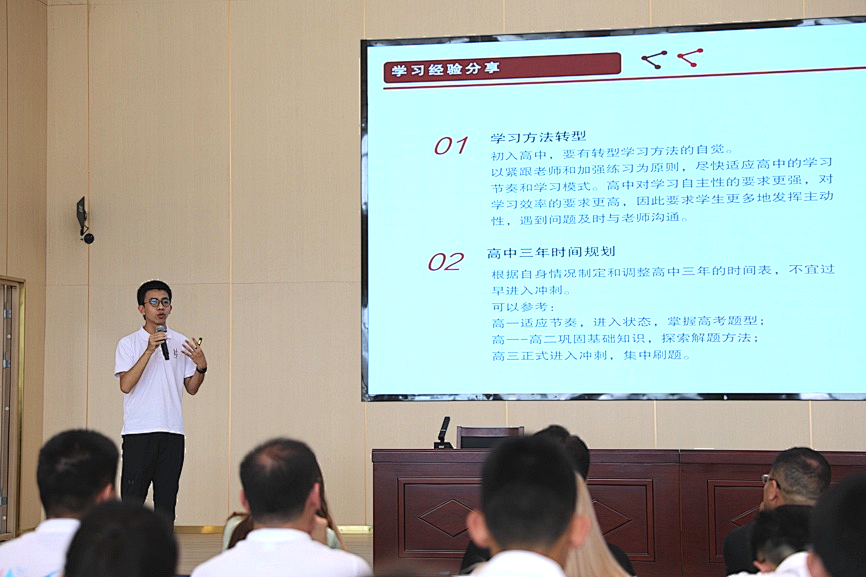 7月17日上午,实践团学生前往奇台县福州中学,开展以“聚榜样力量 谱育人新篇”为主题的交往交流交融活动。哲学系学生代表以“探索与成长”为主题,面向奇台地区的优秀中学生进行专题分享,介绍了北京大学丰富多彩的大学校园生活以及宝贵的学习经验方法。