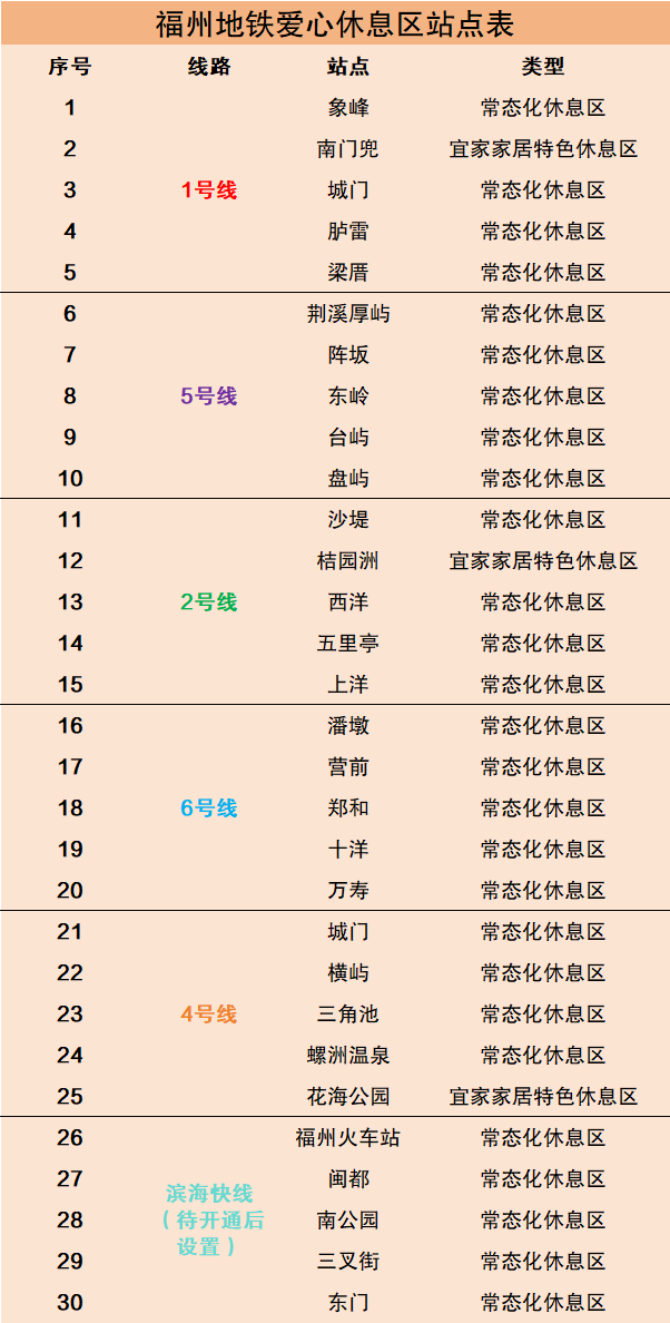 其中,滨海快线的5个爱心休息区