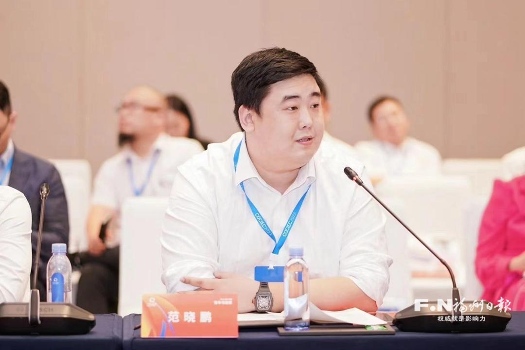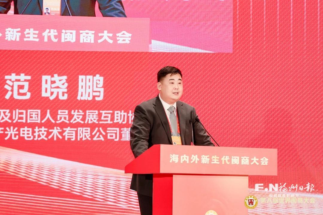 在海内外新生代闽商大会上,范晓鹏登台发言。