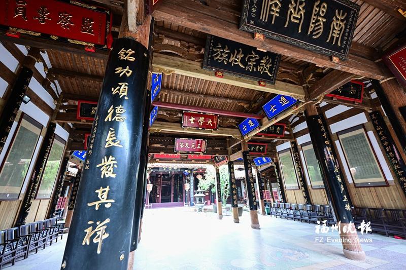 据介绍,南阳陈氏始祖陈熹于唐末随王审知入闽,后裔陈泰迁居长乐。南阳陈氏祠堂始建于明永乐十六年(1418)。陈氏历代人才辈出,涌现出60余名进士、300多名宫宦,如“两代六忠臣”“父子两尚书”“叔侄七进士”等。明东阁大学士叶向高、黄道周,清林则徐、李光地等均在南阳陈氏祠堂留下题词。