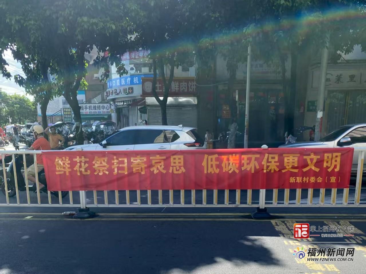 南屿镇新联村新时代文明实践站志愿者向群众分发移风易俗宣传折页