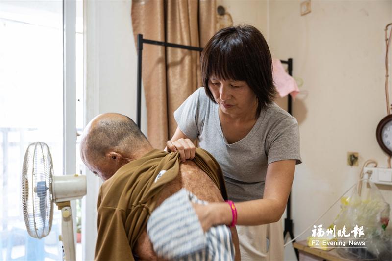 近日,在闽侯县南通镇文山村的一座民房中,56岁的陈美燕正熟练地为满身伤疤的丈夫陈智勇擦身换药。这位面容清瘦却目光坚定的女子,已这样守护重度烧伤的丈夫整整30年。