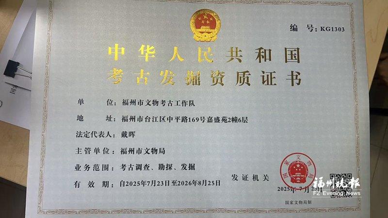 福州市文物考古工作队队长戴晖说,获得国家文物局授予的考古发掘资质证书,对福州考古而言是质的飞跃,意味着今后市考古队可以独立自主开展考古发掘保护工作,为福州历史文脉传承、文化遗产保护和利用贡献更多更强的考古力量。