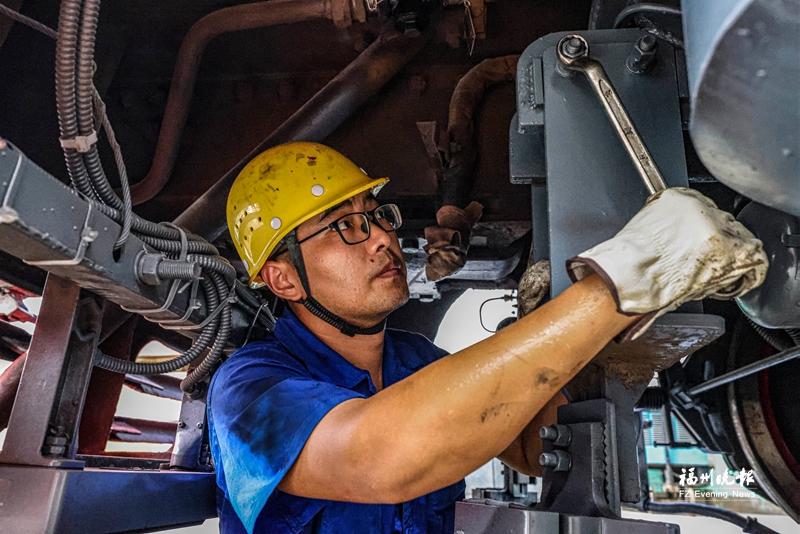 近日的一个上午,一台内燃机车正“安详”地停在福州机务段内燃检修库,等待它的是为期一周左右的“全身大修”。