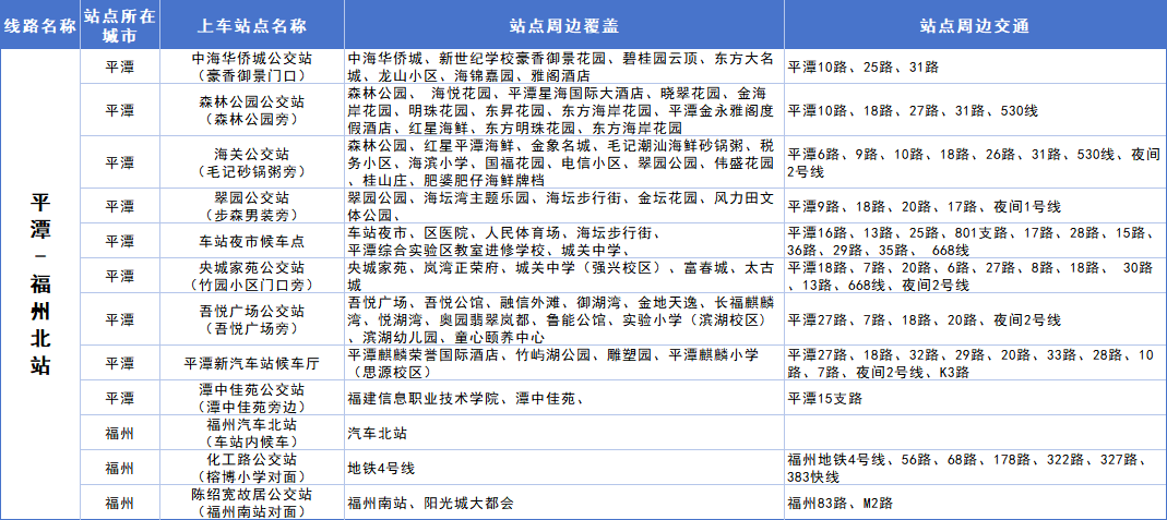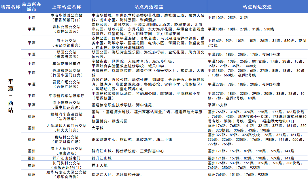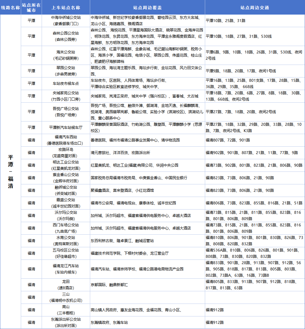 途经:中海华侨城、森林公园、海关、翠园、车站夜市候车点、央城家苑、吾悦广场、平潭新汽车站候车厅、潭中佳苑、福州汽车客运西站、大学城师大东门、葛岐村、浦上大桥西、群升江山城南门、长门头村、顺华乌龙江大区。
