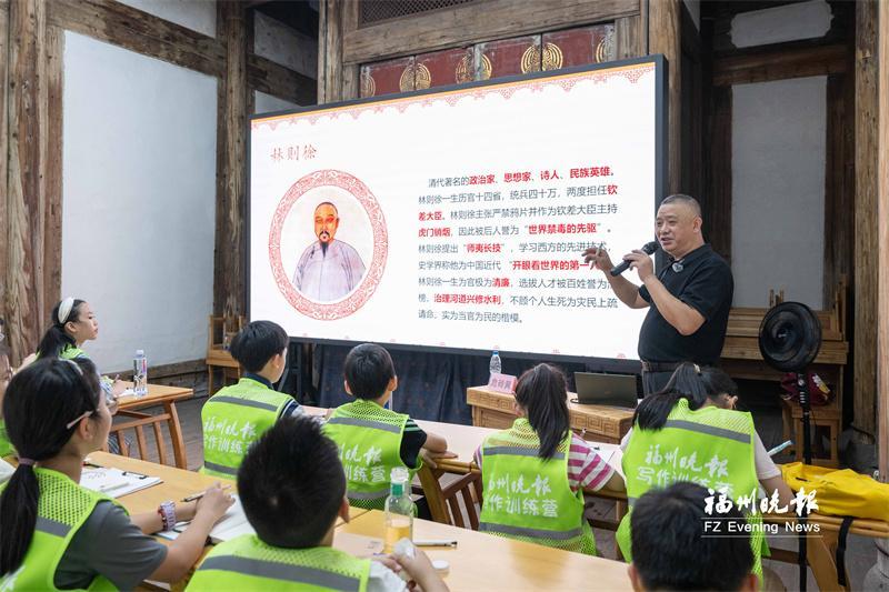 福州晚报编委、市政协文史研究员危砖黄为小营员们解读林则徐经典诗词。