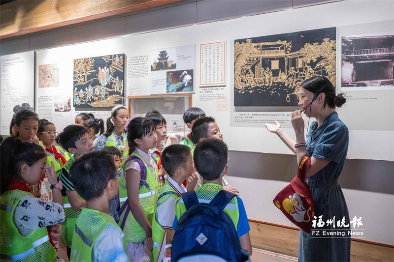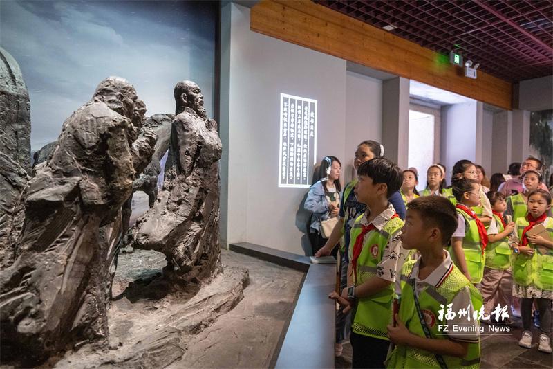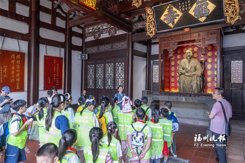 “你们看,‘海纳百川,有容乃大;壁立千仞,无欲则刚’这副林则徐的自勉联,上联已被定为福州的城市精神。做人需要这种精神,一个城市也需要这种精神。”在观展过程中,危砖黄不仅带领小营员们朗诵林则徐经典诗词、家风家训,还讲解它们所表达的意思,以及背后的故事。
