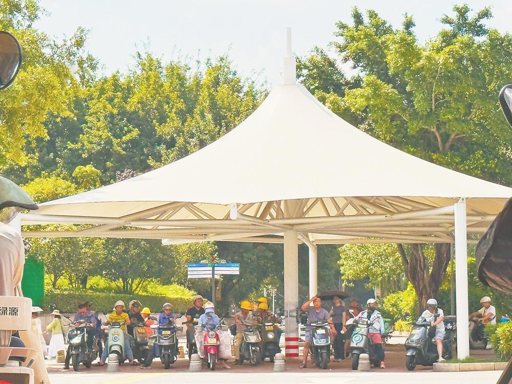 在遮阳棚下等红灯的市民黄晓艺说:“夏天气温高,等红绿灯时就像在火焰山上烤,一秒都不想待。有遮阳棚就好太多了,这一便民举措非常好。”