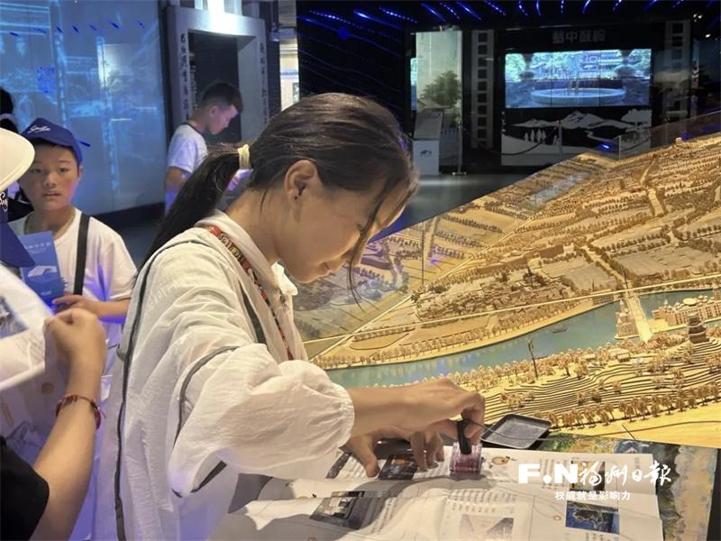 正值馆内暑期集章打卡活动火热进行,规划馆变身“寻宝乐园”。手持宣传地图的西藏青少年穿梭于各个展区,搜寻六枚隐藏的“城市密码”印章。用集满印章的地图换取刻有福州区县特色的主题钥匙扣时,孩子们雀跃不已。