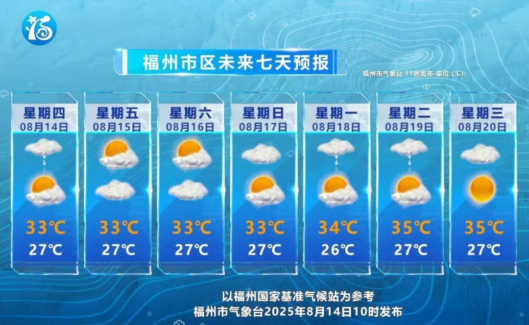 未来几天,副热带高压将呈现加强西伸北抬的趋势,不过好在福州的高温暂时不会发展。未来三天福州市区最高气温维持在33℃。天气依旧闷热,需持续做好防暑工作,及时补充水分和电解质,谨防中暑。