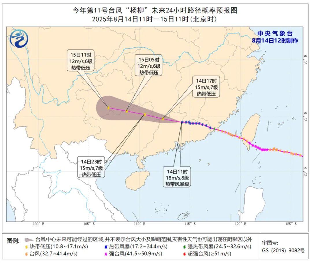 今年第11号台风“杨柳”于昨天13时前后在台湾台东县太麻里乡沿海登陆,登陆时中心附近最大风力14级(强台风级),尔后已于今天00时30分前后在漳州市漳浦县沿海再次登陆,3时进入广东省境内。预计,“杨柳”将以每小时30~35公里的速度快速向西偏北方向移动,强度逐渐减弱。
