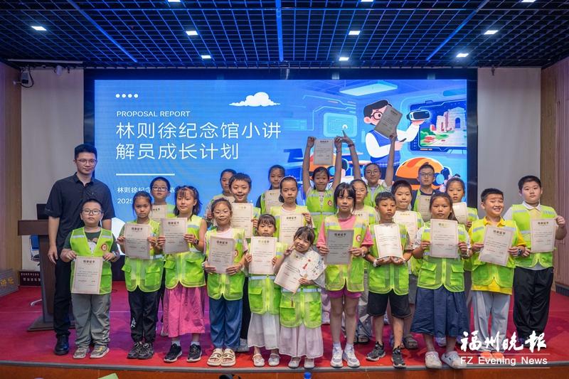 课堂落幕,小营员们获得由林则徐纪念馆和福州晚报联合颁发的“纪念林则徐诞辰240周年系列研学活动结业证书”。(记者 关志杰 周桃茂/文 林双伟/摄)