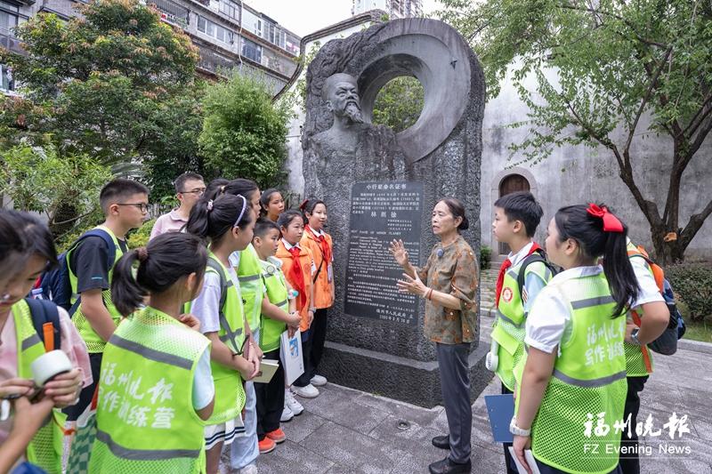 随后,小营员们来到林则徐出生地。这里的展览主要体现林则徐青少年时期(考中进士前)在福州的生活情况。在院子的广场上,“林则徐星”纪念碑吸引了小营员们的目光。“这里是林公出生地,‘林则徐星’纪念碑安放在这里,寓意新星从这里冉冉升起。”林则徐基金会名誉会长、林则徐第六代孙女林祝光把“林则徐星”的故事娓娓道来。