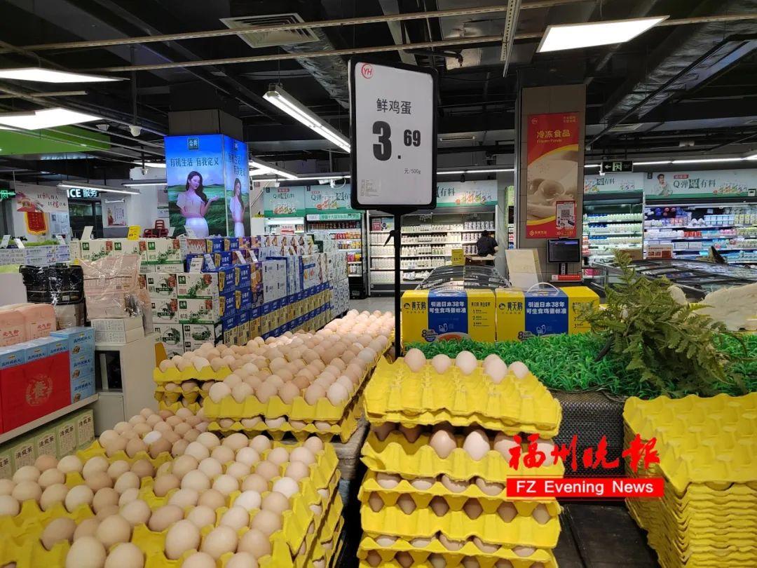 在福州一家超市,顾客张先生说,太便宜了!现在超市里最便宜的鸡蛋,价格为每500克3.69元。而这种鸡蛋,2个月前的价格为每500克6元,价格大降。