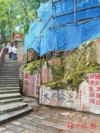 鼓山摩崖石刻被誉为“东南碑林”,是福州历史文化的重要象征。据悉,鼓山摩崖石刻日常保养维护工程于本月初启动,此次养护的范围包括石蹬古道、十八景、灵源洞、绝顶峰等地的摩崖石刻。