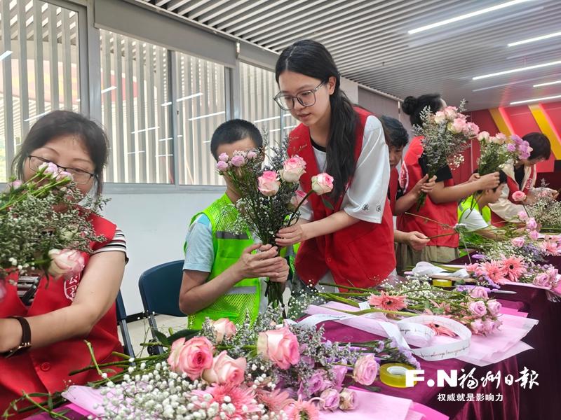 “老师,我舍不得你走……”21日上午,在台江区福瑞社区的小善公益特教课堂上,孤独症青年小陈向即将返校的大学生志愿者叶姝贝送上了亲手制作的花束,一句真挚的不舍道出了深厚的情谊。