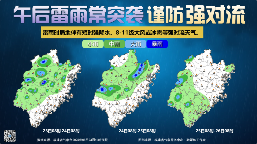 今天到25日,雷雨时局地伴有短时强降水、8~11级大风或冰雹等强对流天气。
