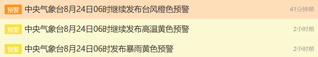 24日,中央气象台继续发布预警信息。