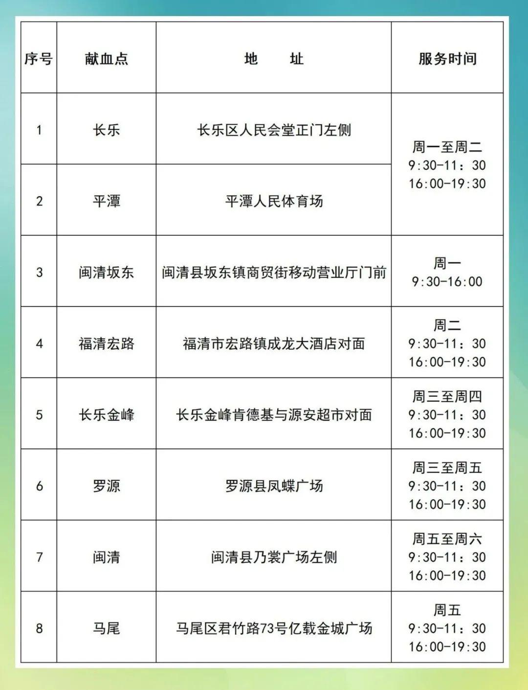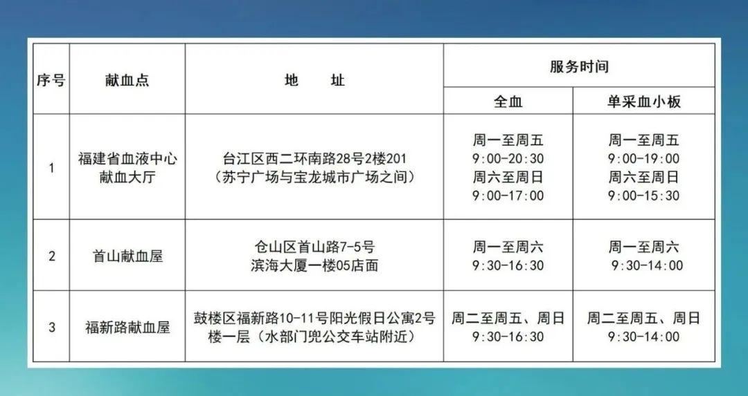 温馨提示:献血点开放将根据具体情况进行调整。咨询热线0591-83897888-0(工作日8:00-12:00/14:30-17:30)。