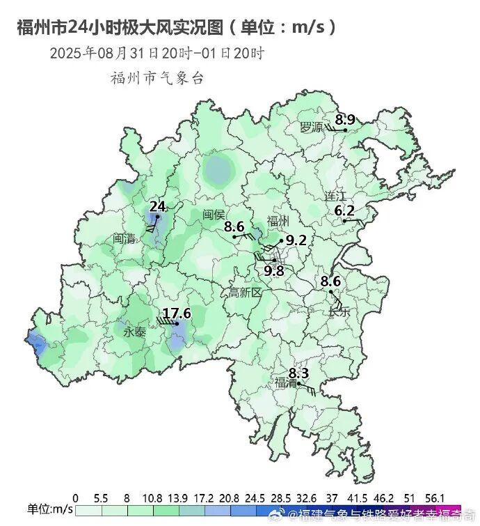 9月1日下午福州各地出现热雷雨,部分地区出现伴随7~10级雷暴大风和短时强降雨的强对流天气。9月2日仍旧需要防范午后可能出现的阵雨或雷阵雨,部分乡镇会达到中到大雨的量级。
