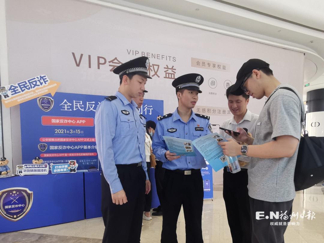 许群林(左三)与同事在商场开展反诈宣传。通讯员 林端娜 摄