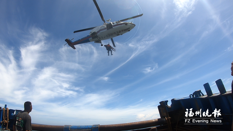 近日,福州外海的一艘渔船上,3名渔民在作业时遇险,情况危急。获悉情况后,交通运输部东海第二救助飞行队直升机直奔事发水域,营救遇险渔民。