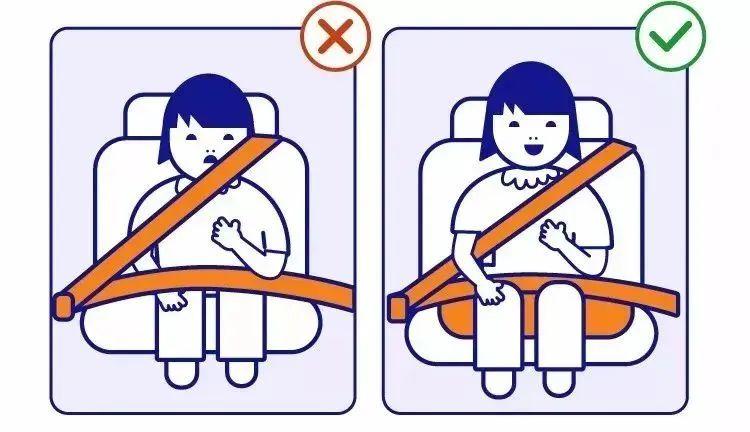 孕妇:肩带跨过胸部中央,腰带避开腹部隆起部位,放在胯骨最低位置。