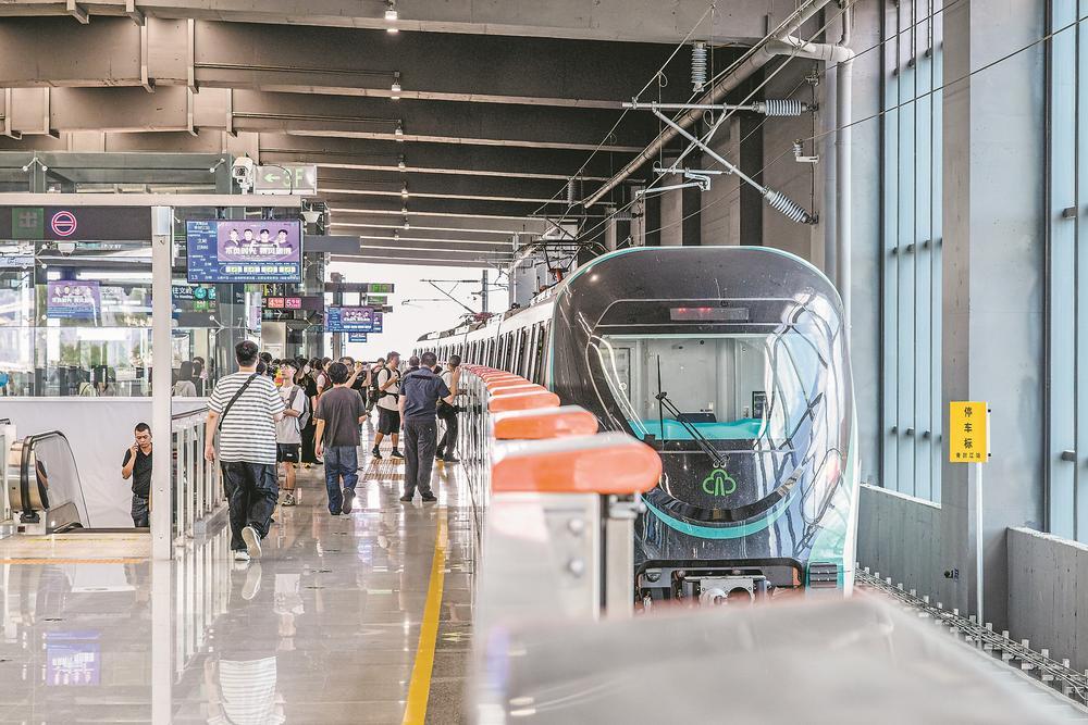 福州地铁滨海快线起于福州火车站,经福州主城区、滨海新城、长乐国际机场,终至文岭站。它串联福州主城、新城,衔接地铁、国铁、机场三种交通方式,是城市“新动脉”。(记者 张颖 实习生 陈天博 摄)