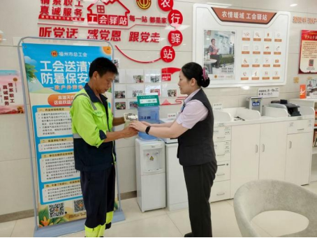 联结“一新”,共沐骄阳。农行福州分行积极践行社会责任,依托网点的服务资源,精心打造“爱心驿站”,为户外劳动者搭建起遮阴避暑、休憩歇脚的温馨港湾,以实际行动践行“我为群众办实事”的初心使命。农行华林鼓屏支行立足工会驿站,为网点周边环卫工人送上解暑物资与贴心关怀;农行福清支行打造“爱心歇脚点”,环卫工人等户外劳动者可随时进入,工作人员主动递上热水,提供休息等服务,用一杯水、一份爱心传递关怀;农行东大支行在网点门口设立“爱心茶摊”,为奔波忙碌的快递员等户外工作者送上夏日清凉……“平时送件顾不上喝水,这儿的茶摊就像个‘加油站’,喝一口浑身都舒服。”一位刚接过热茶的快递员感慨道。