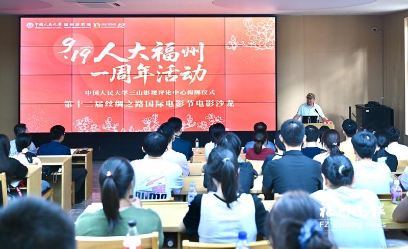 当天,“丝路光影,有福同映”第十二届丝绸之路国际电影节电影沙龙系列活动在中国人民大学福州研究院同步启动。教育部高等学校戏剧与影视学类专业教学指导委员会主任周星主讲“近年中国电影艺术表现的审美价值分析”公益讲座,吸引了众多高校师生来到现场聆听。