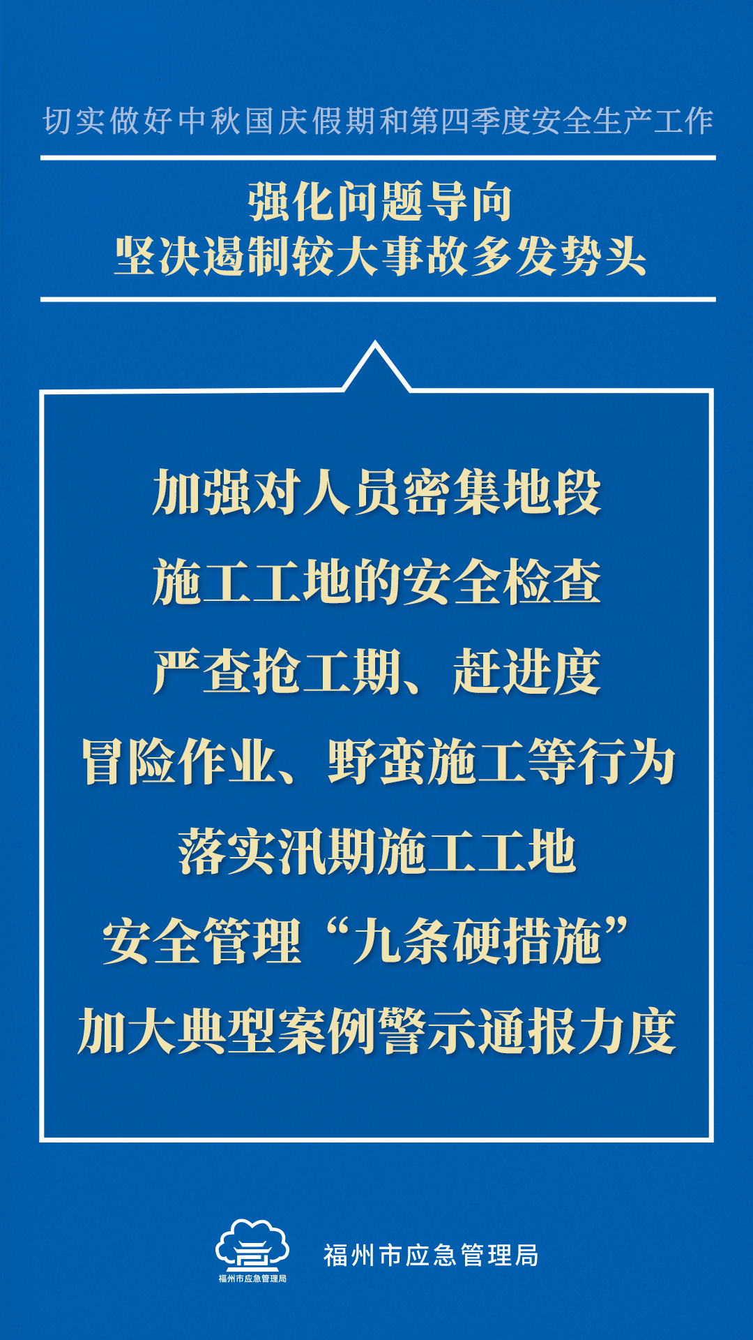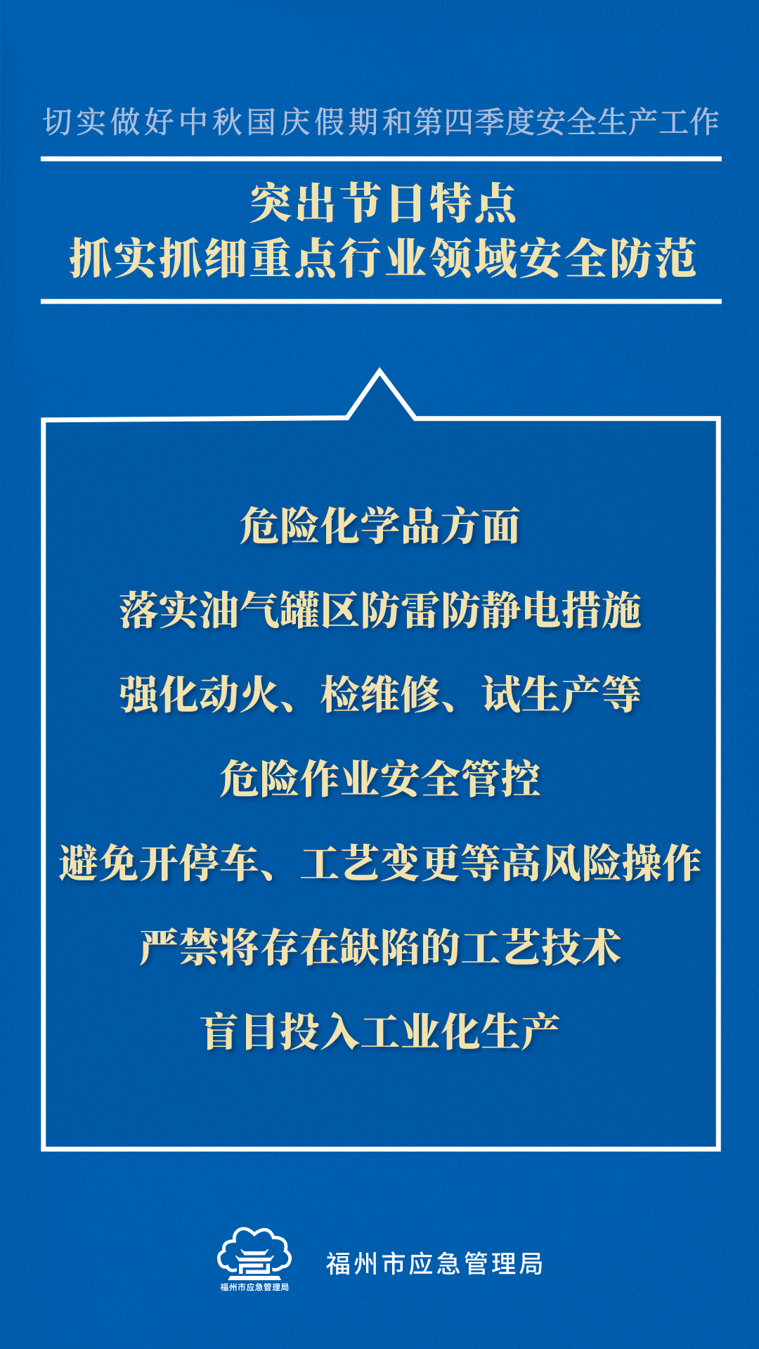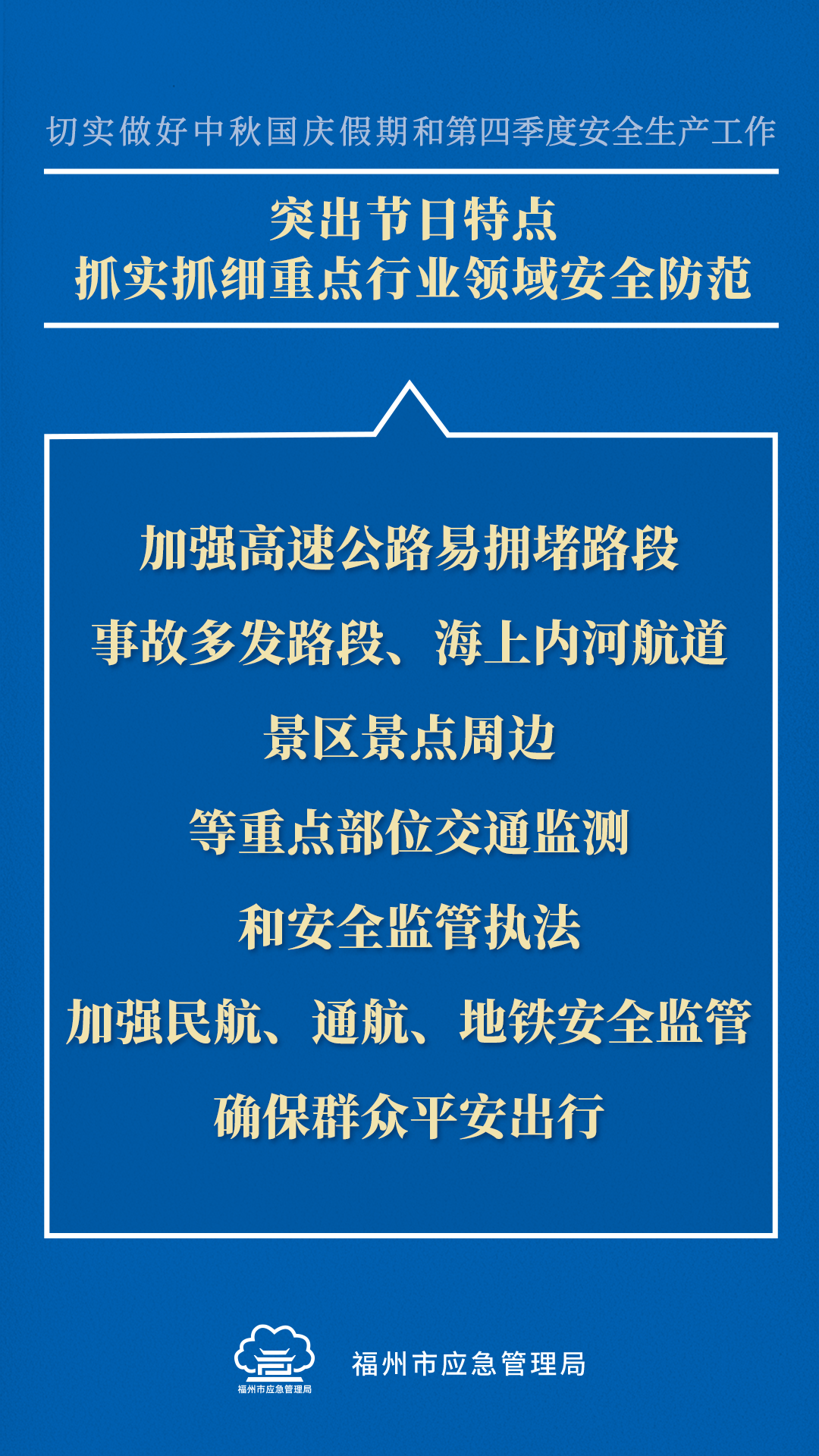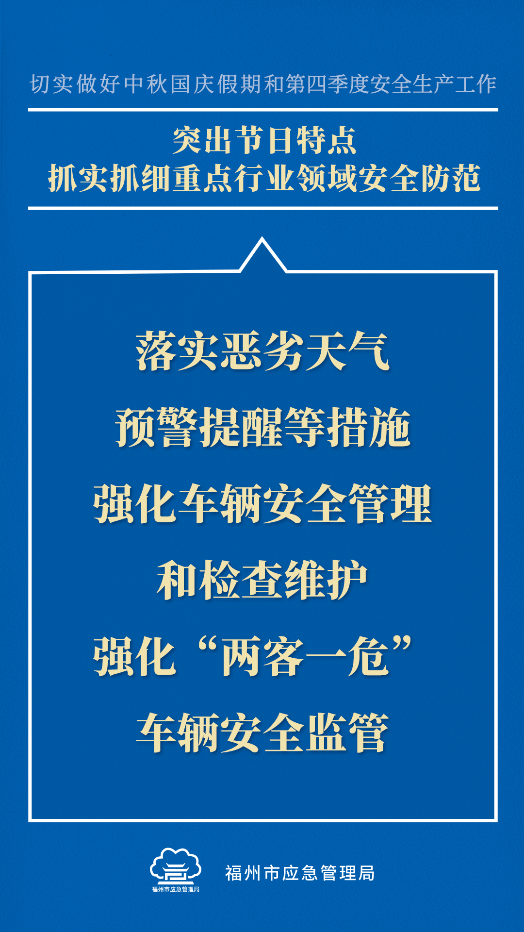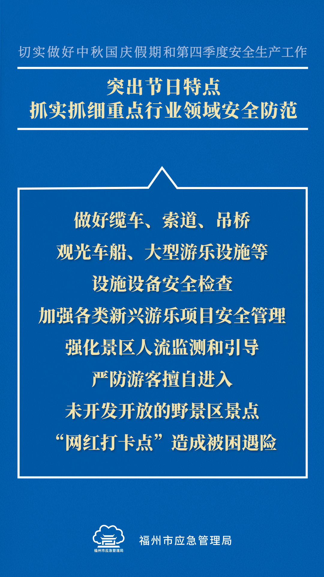 即将到来的中秋国庆假期,群众出行出游集中,安全风险加大,加之第四季度生产经营活动旺盛,历来是生产安全事故易发期。这些内容划重点!↓↓↓