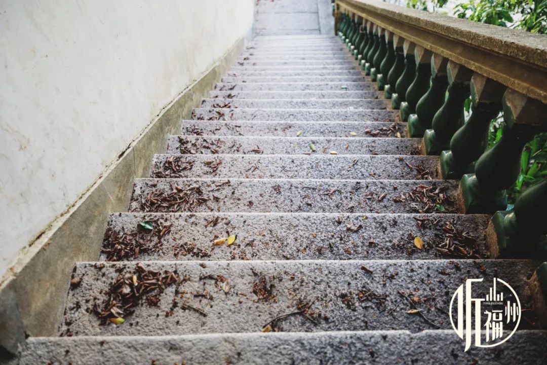 行走在仁寿堂边狭长的石阶上,脚踩干枯的落叶,遍地清脆,清风将石阶旁的院门打开,咿呀作响,仿佛这栋房子的主人仍未走远。