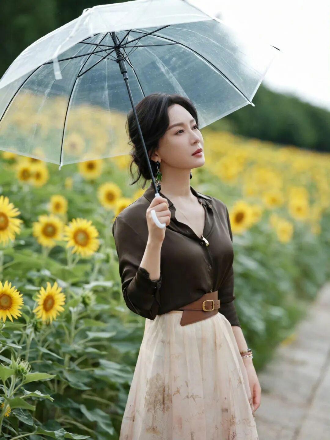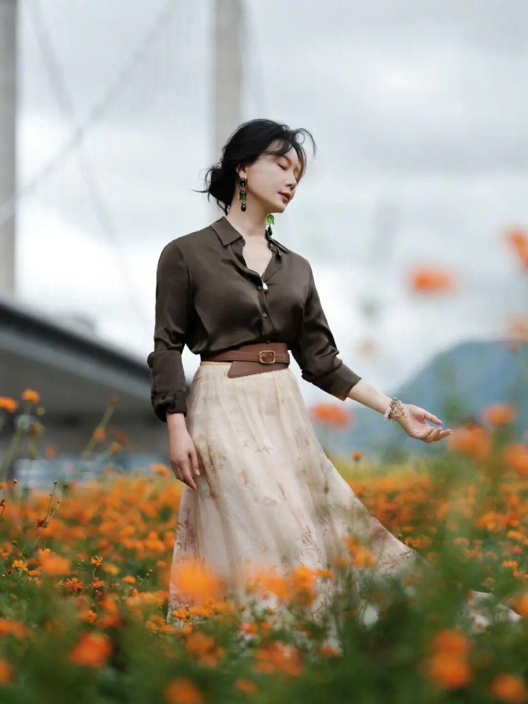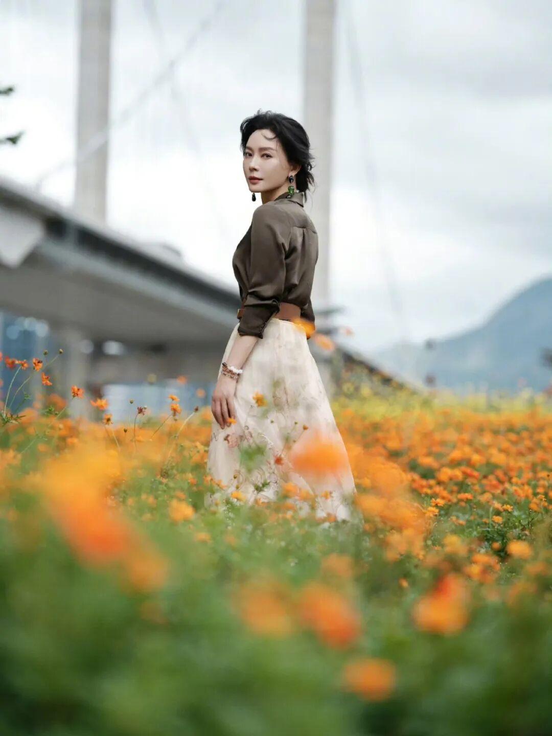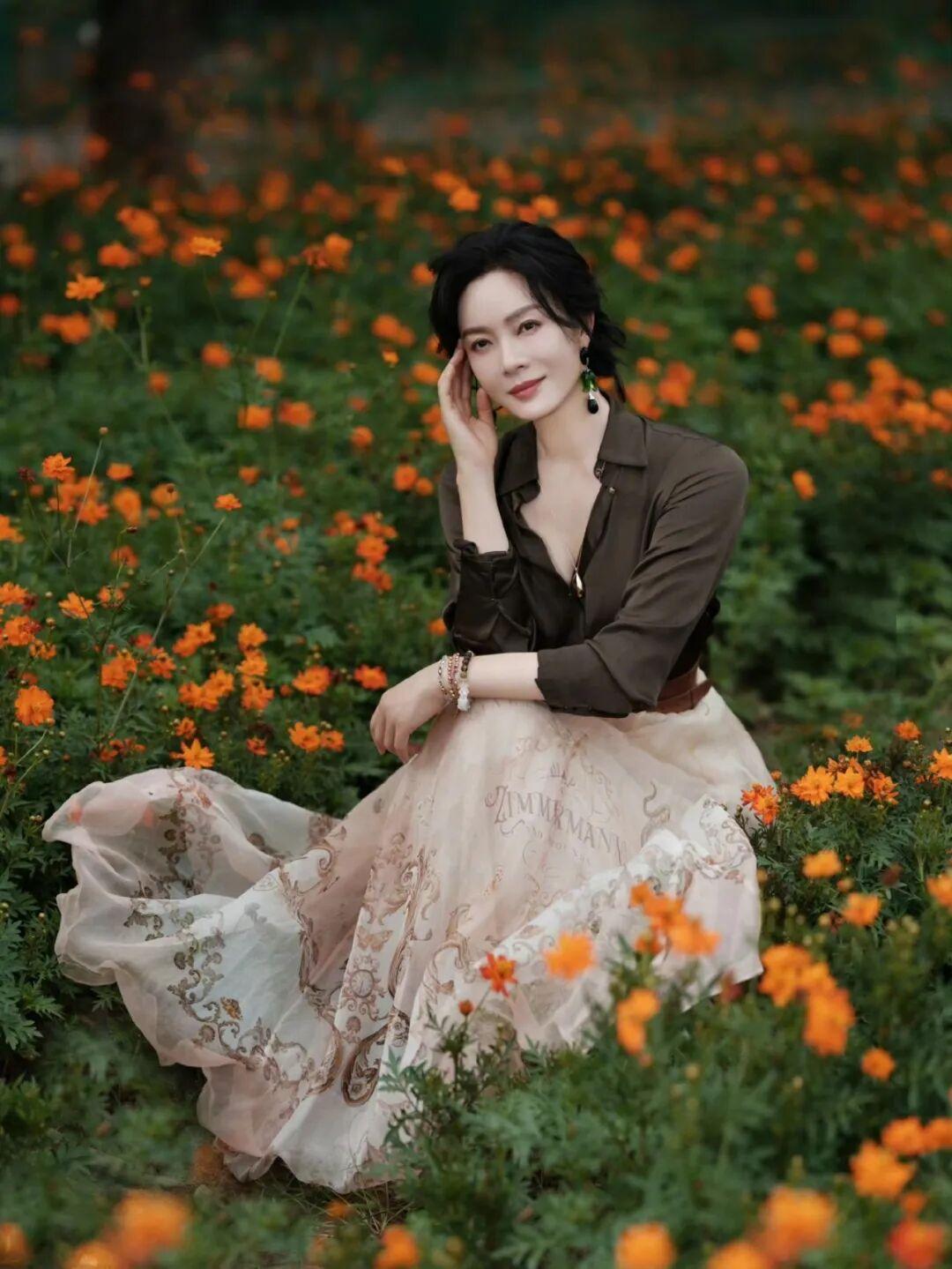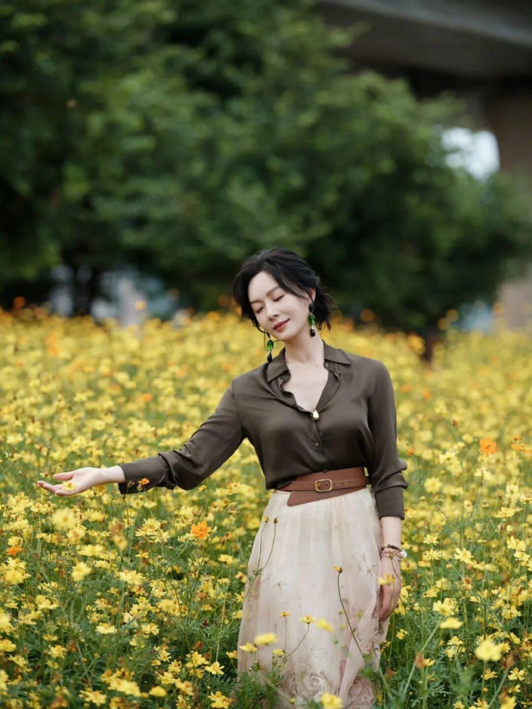 陈数置身花田之中