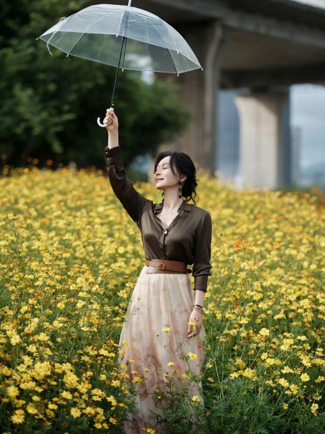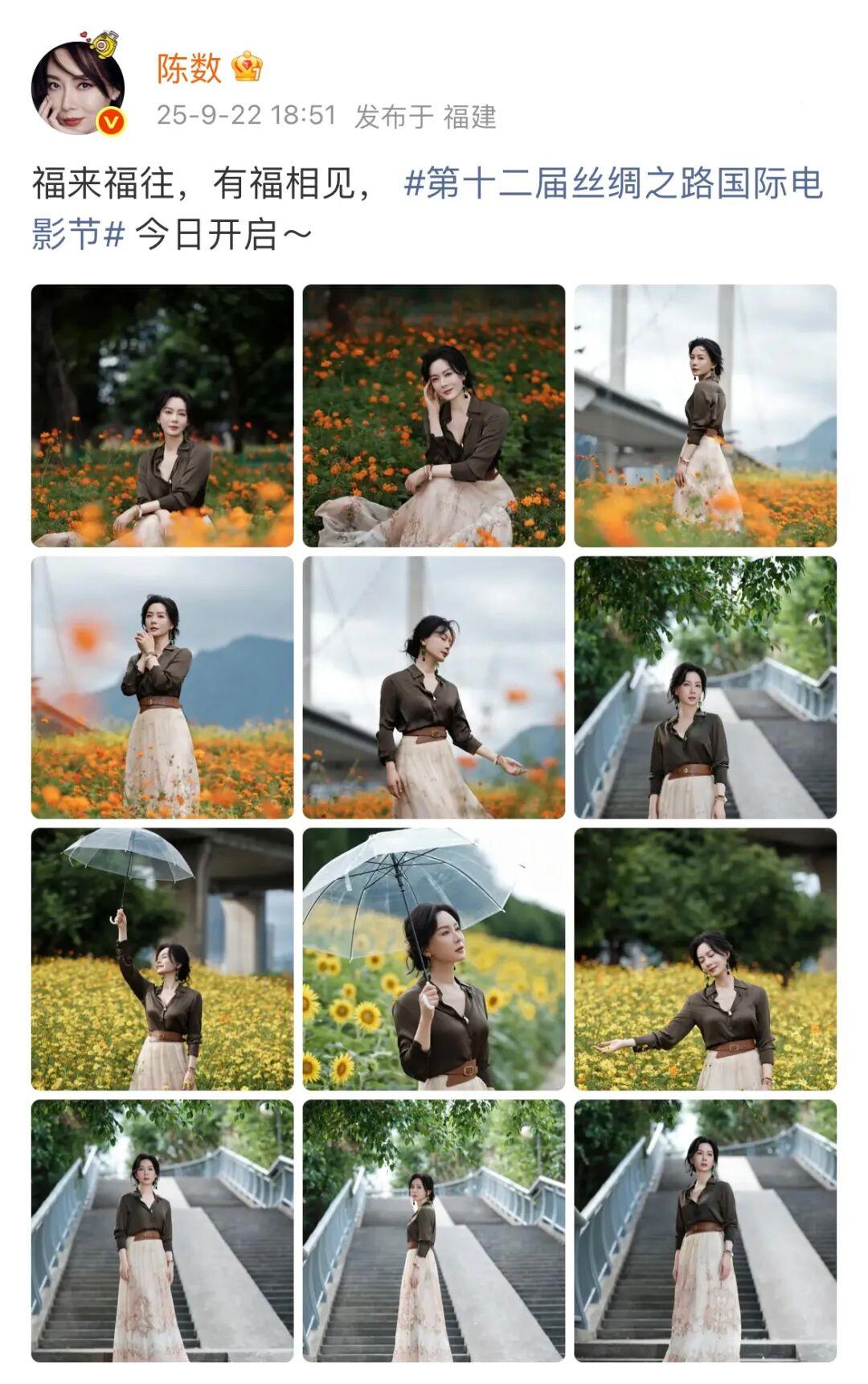 知名女星陈数现身福州花海公园
