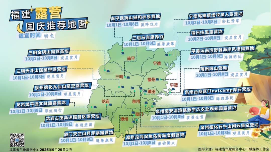 快看!国庆假期福建露营推荐地图