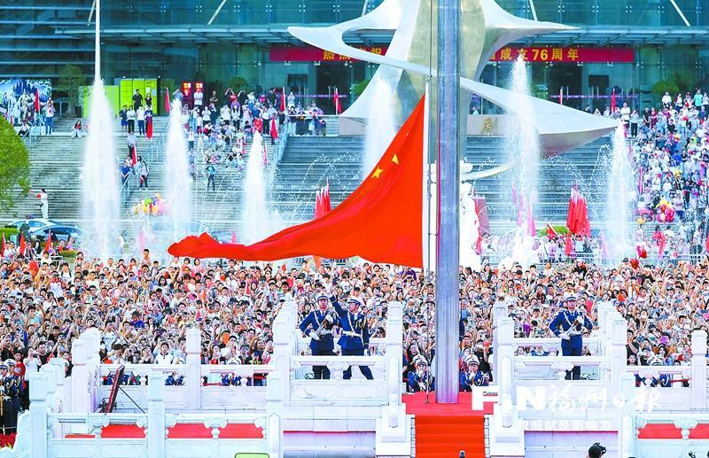 人群中,福州市晋安榕博小学四年级学生柯溢晗仰望着迎风招展的国旗,清澈的眼眸中闪烁着激动的泪光:“这是我第一次在五一广场看升旗,国旗升起的那一刻,我的心中无比自豪。我要把10月1日的所见所感写进日记,让这份感动永远留在心中!”