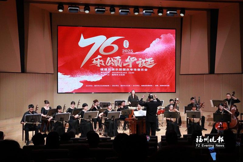 近日,“2025乐颂华诞”福建民族乐团国庆专场音乐会在福州市文化馆举办。福建民族乐团以11首经典与创新兼具的民族管弦乐作品,用悠扬的旋律抒发家国情怀,以精湛演奏为中华人民共和国华诞献上深情礼赞。图为音乐会现场。(记者 王杨林/文 福建省歌舞剧院供图)